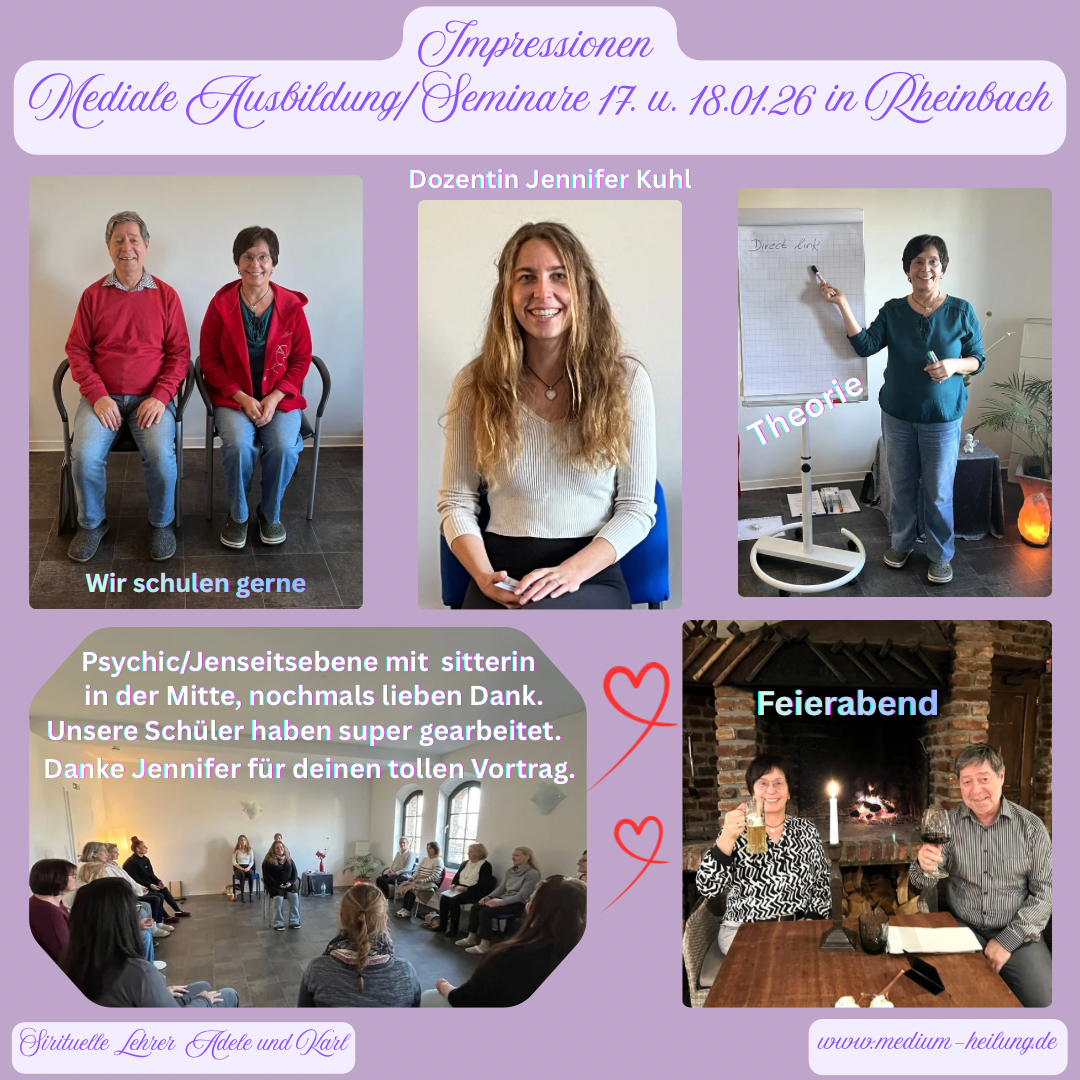 Vom 25.01.2020 bis 26.01.2020 fand unser Grundseminar 02 statt. Es war ein sehr emotionales Wochenende mit der Geistigen Welt und unseren Schülern. Es wurde gelacht und es wurde geweint in einer aufgehobenen Atmosphäre. Wir freuen uns schon auf das Aufbaueminar im April 2020.