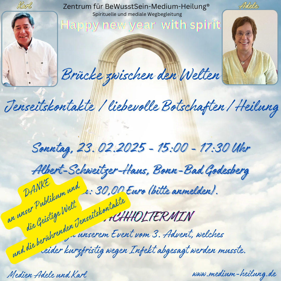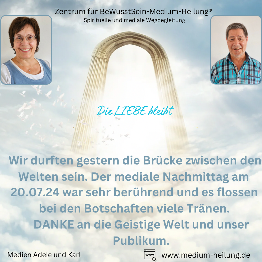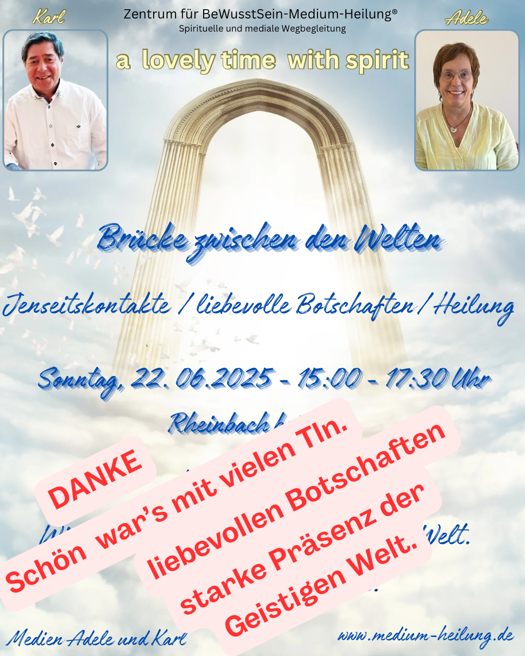 Danke an die Geistige Welt, ohne die unsere Arbeit nicht möglich wäre und an unser liebes Publikum.