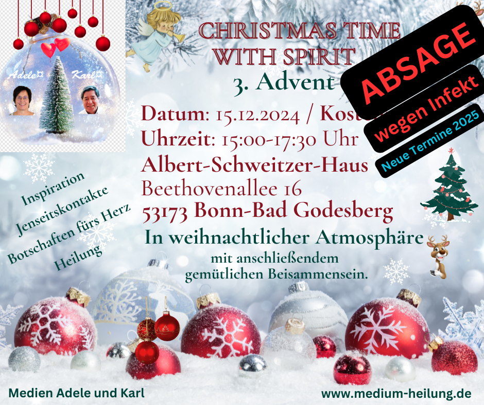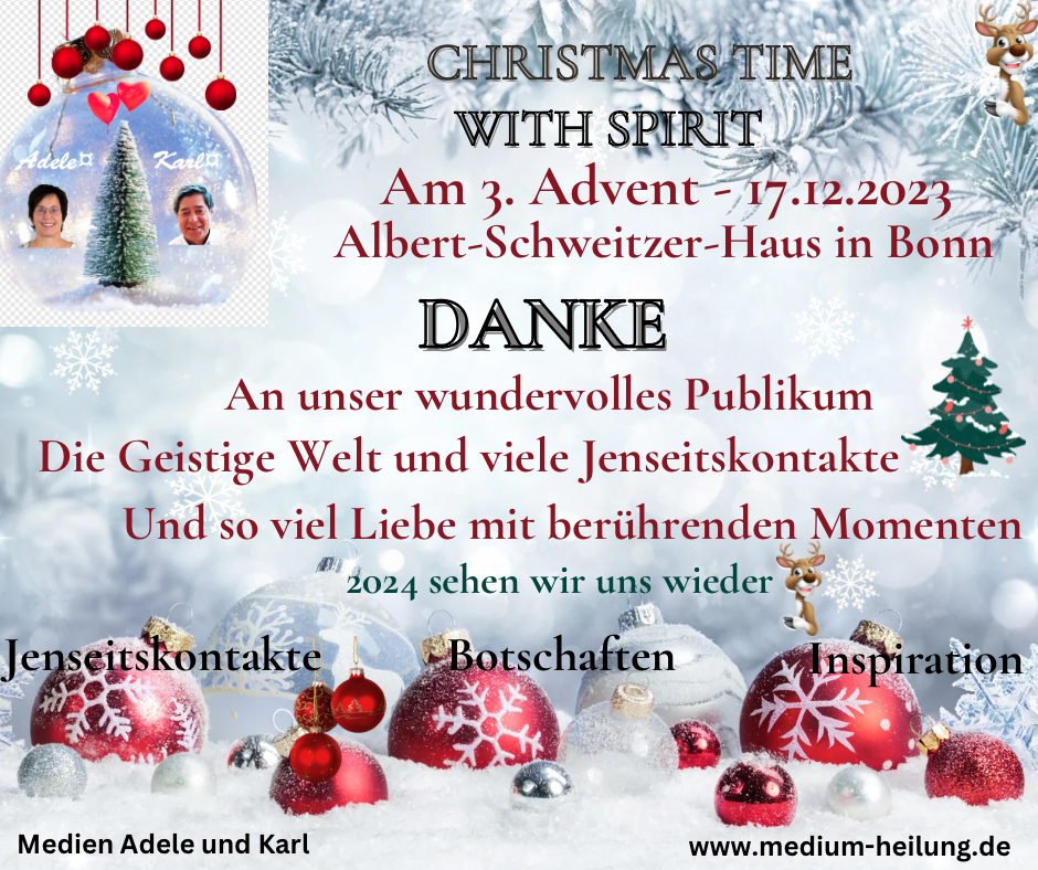 Zum Abschluss für dieses Jahr waren wir wieder im Albert-Schweitzer-Haus in Bonn - Bad Godesberg und gaben dort einen medialen Nachmittag.