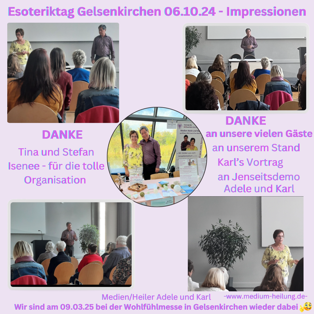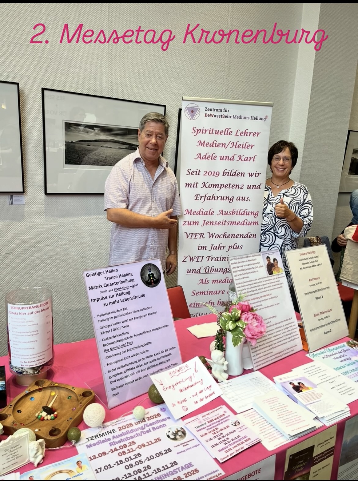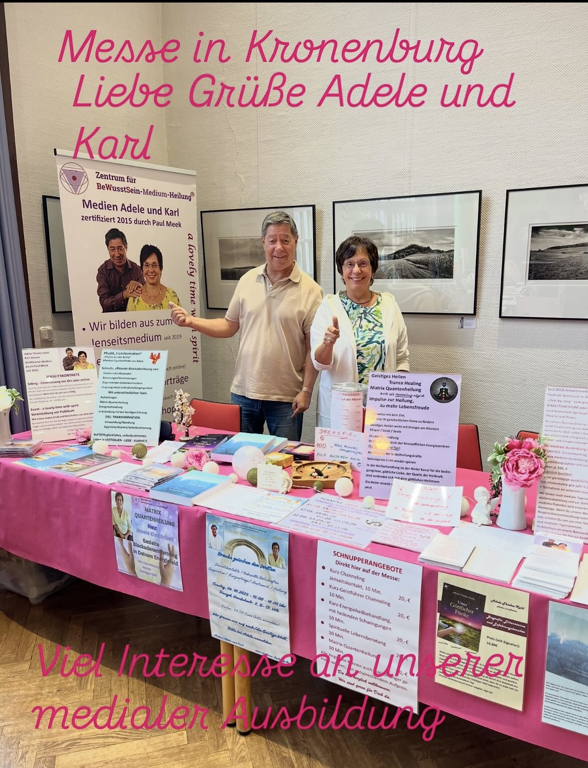 Es war sehr abwechslungsreich. Karl und ich gaben Vorträge und Jenseitskontakte. Unsere Angebote mit Kurz-Channelings als Jenseitskontakt oder mit der Geistigen Führung, Heilarbeit, Matrix Quantenheilung wurden gut angebommen.