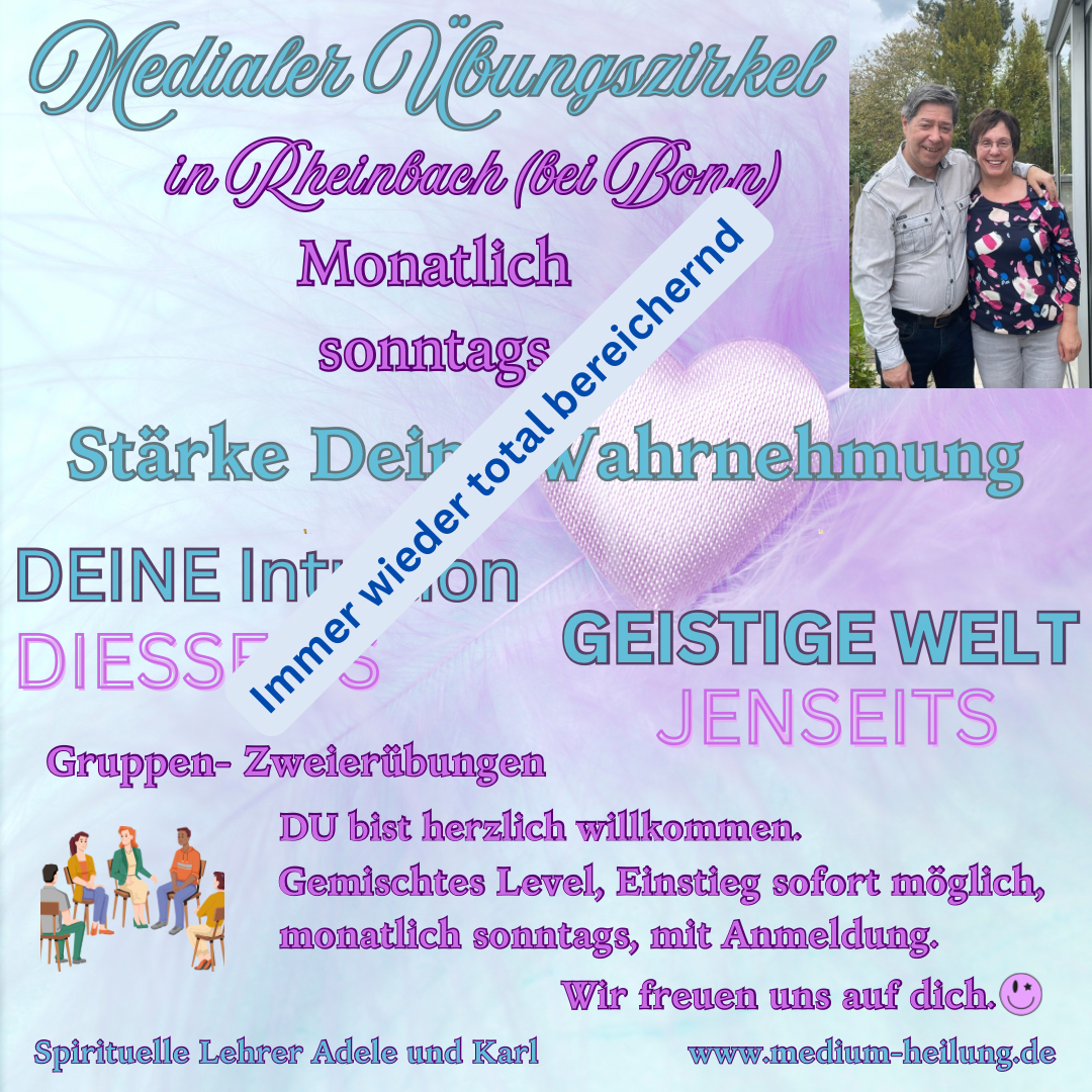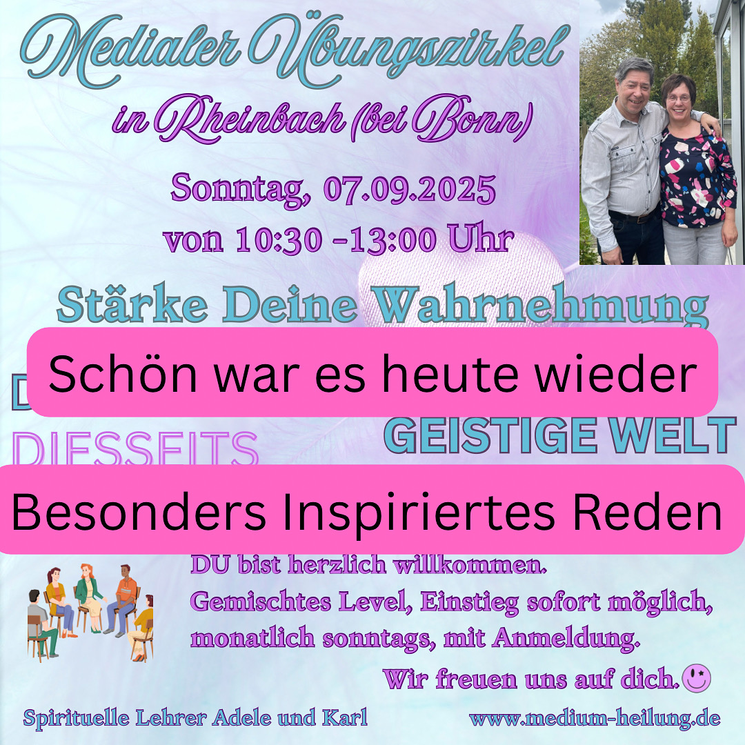 Am 04.05.2019 hielten wir wiederholt, auf Anfrage von etlichen Personen aus dem Bonner Raum, einen medialen Nachmittag in Rheinbach in einem