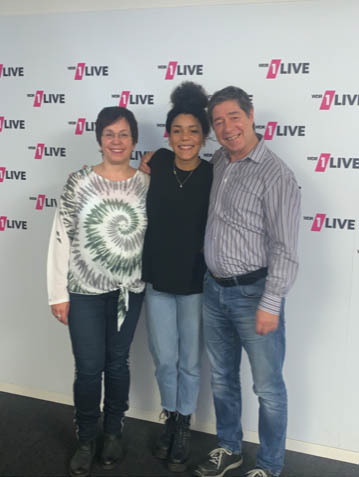 Hier noch ein Danke an 1Live. Es hat sehr viel Spaß gemacht. Auf dem Foto auf der linken Seite sind wir mit einer netten Redakteurin von 1Live.