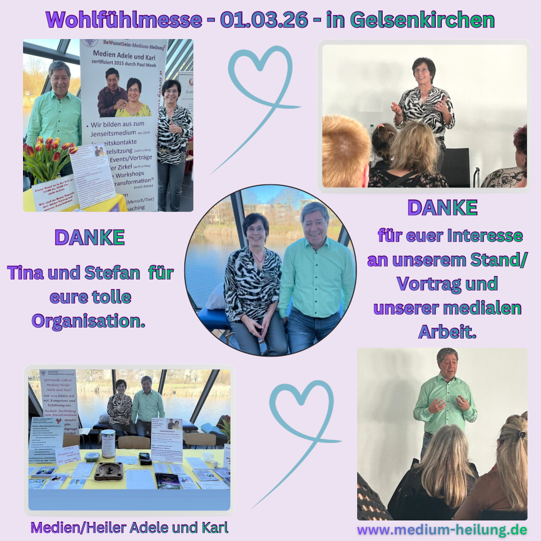 Danke an das Albert-Schweitzer-Haus, das Publikum und vor allem an die Geistige Welt, die uns sehr gut unterstützt hat und ohne diese unsere mediale Arbeit nicht möglich wäre.